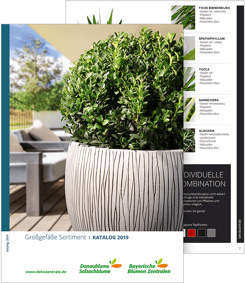 Stöbern Sie jetzt durch unser Großgefäße-Sortiment für den Innen- und Außenbereich. Auf Anfrage stellen wir Ihnen Ihre Wunschkombination von Topfpflanze und Pflanzenkübel auch gerne individuell zusammen.